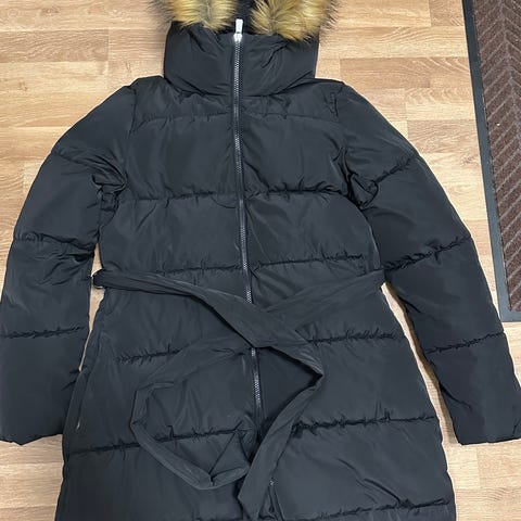 Koko M, reilua mitoitusta. Uudenveroinen, ollut vain satunnaisesti käytössä. Erittäin lämmin ja hyvin eristävä pitkä toppatakki. Thermolite-eristys, vettähylkivä PU-pinnoitettu materiaali. Täyspitkä vetoketju, säädettävä huppu ja useita vetoketjullisia taskuja.