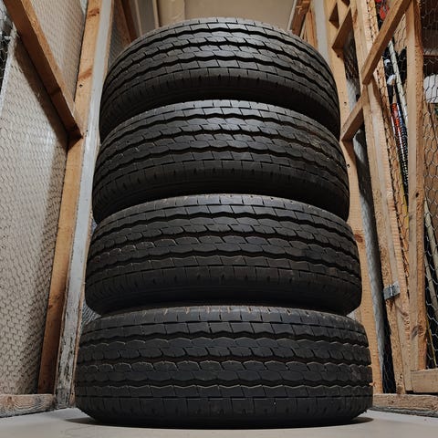 Olleet VW Transporterin alla, kulutuspintaa tasaisesti 6.5-7mm. Paistoleima 4718.