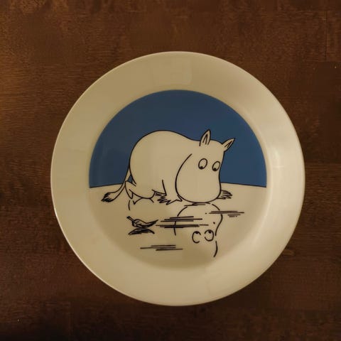 Myydään käyttämätön tarrallinen Muumipeikko lautanen.