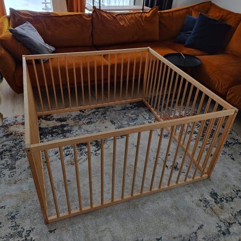 Siisti, yhden talven ajan käytössä ollut leikkikehä. Oviaukon vetoketju hieman rikki, mutta helposti korjattavissa. Kehän pohjalla patja, joka lämmittää kivasti leikkijöitä.