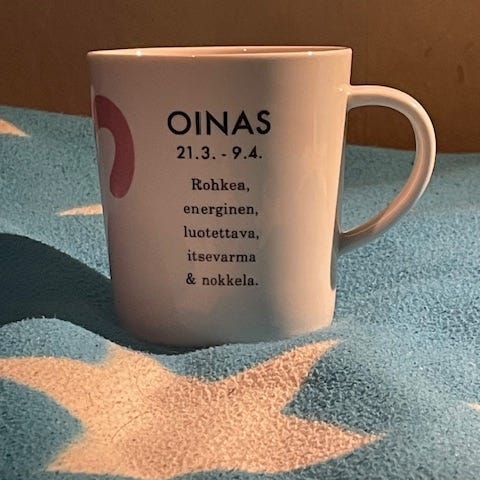 Thun Härkä Horoskooppi muki. valkoinen väri. Mukissa on astrologinen kuviointi, materiaali posliinia. Kork 10 cm, halk. 7,5 cm.