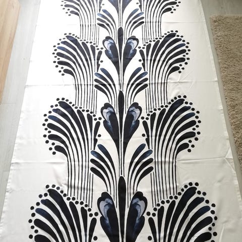 Pöytäliina on hyväkuntoinen ehjä ja puhdas. Kuvatessa en löytänyt mitään huomautettavaa. Ollut todella vähällä käytöllä aikoinaan! Voi käyttää myös verhona!
