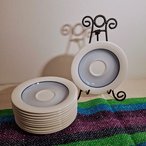 Kahvikupin aluslautanen virheetön 5 kpl + 1, jossa reunassa lohkeama ks. kuva.