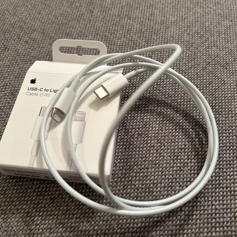 Parin metrin pituinen punottu kaapeli lataukseen, synkronointiin ja datan siirtoon. Latauskaapelin kummassakin päässä USB-C-liitäntä. Tukee peräti 240 W:n latausta sekä pikalatausta.