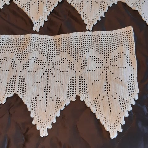 Erilaisia virkattuja pitsiliinoja,tuunaukseen,askarteluun,verhoiksi ym.Voin tarvittaessa postittaa.