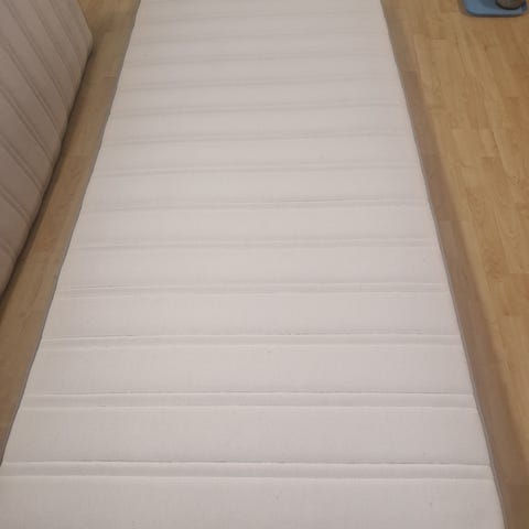 IKEA HYLLESTAD patja valkoisella päällisellä. Koko 90cm x 200cm. Siistissä kunnossa, kuten kuvista näkee.