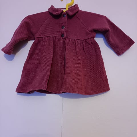 Pinkki-valkonen ihana mekko, perhosissa kulumaa, pinnassa nukkaa, helmasta painattu käsin reikä. Tahraton.