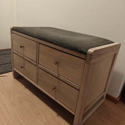 Myydään kuvanmukainen eteispenkki/kenkähylly/eteiskaluste/kenkäteline/senkki/hylly, jossa tilava säilytystila saranakannella.