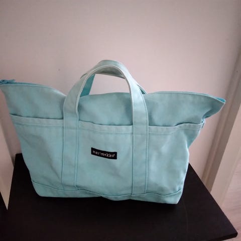 Marimekon Matkuri kassi. Pesussa tullut haalistumaa. Ehjä ja käyevä vaikka viikonloppureissuun.