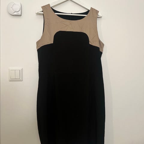 Kerran käytetty Vero Modan juhlamekko jossa piilovetoketju selässä ja sisäänommeltu alushame. Takana alaosassa halkio (vielä ompeleilla kiinni). Korkeus rinnan yläosasta helmaan 90 cm, rinnan alasaumasta helmaan 72 cm. Leveys rinnan alta, sauman kohdalta 40 cm.