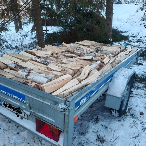 Myydään Kuivaa koivuklapia säkeissä.
