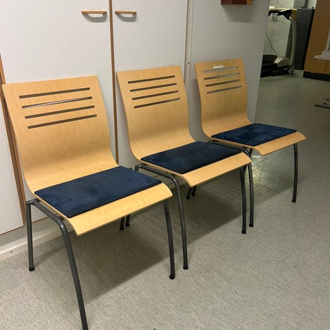 Säädettävillä jaloilla olevia ihan ok-kuntoisia ns koulutuoleja.