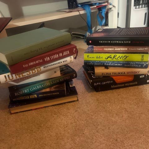 Kirjapaketti (4 kirjaa). Siistejä kaikki. Lukemista, vaikka hiihtolomalle. Yht. 7 €. Nouto Kangasala