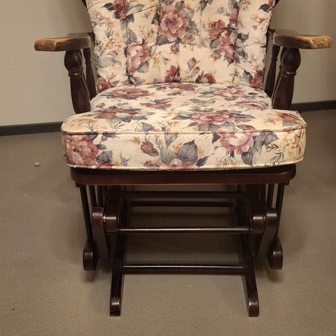 60 luvun keinutuoli. Mukana on myös pienet toppaukset