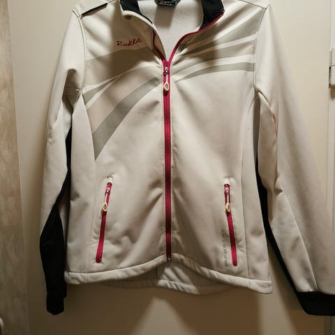 Rukan softshell hiihtotakki ja housut. Housuissa irrotettavat olkaimet, kiristysnyöri vyötäröllä ja lahkerbsuissa vetoketjut