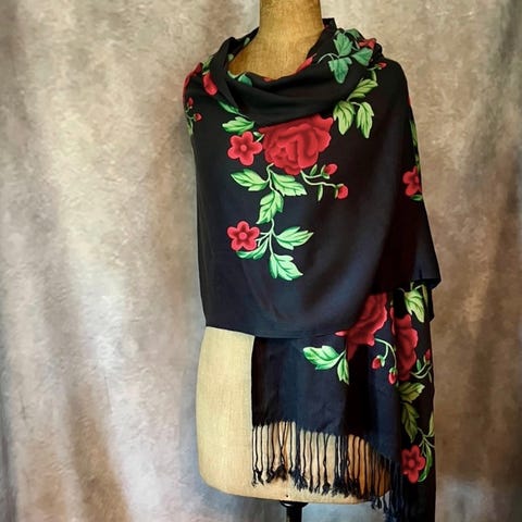 Upea vintage iso vaalea ruusukuvio villa huivi shaali
