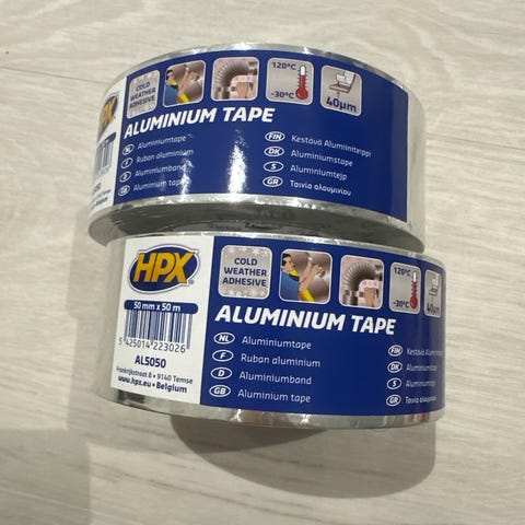 Alumiinipintainen teippi rakennus- ja LVI-käyttöön.