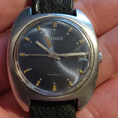 Hyväkuntoinen naisten vintage Citizen vetokello. Käy ja pitää aikaa muutaman tunnin seurannalla. Huoltohistoriasta ei kuitenkaan tarkempaa tietoa. Koko 27mm kruunulla. Bund-tyylinen nahkaranneke. Nouto Turusta tai postikulut ostajalle.