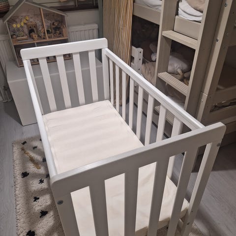 Erinomaisessa kunnossa oleva pieneen tilaan sopiva pinnasänky 0-3 vuotiaalle