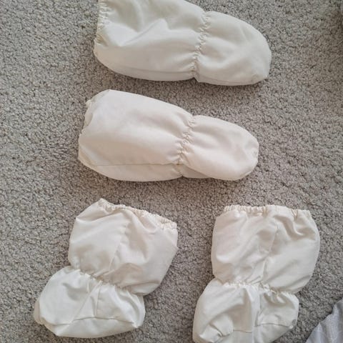 Töppöset, edestä kangas kulunut.
