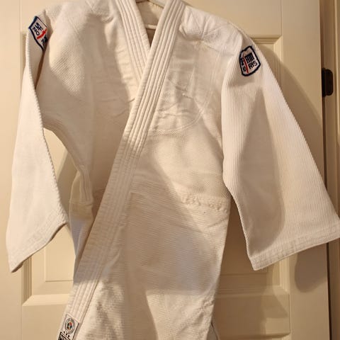 170cm kamppailulajipuku Kizoku + valkoinen vyö, vahvempi malli. Ehyt kaikin puolin, kestää retuuttaa ja repiä, kiristys nyörillä vyötärön osalta, ei joustava. Voin lähettää kulut ostajalle