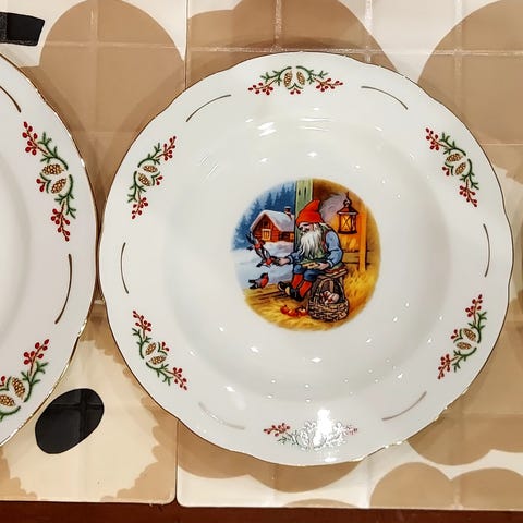 Myynnissä 2 ruokalautasta, 2 alkuruoka lautanen ja kaunis sokea pulla lautanen 2 kpl näitä eli yhteensä 6 lautasta hinta yhteensä 60€