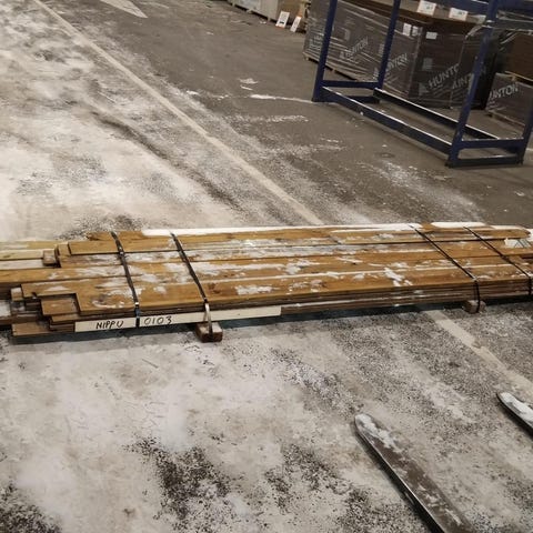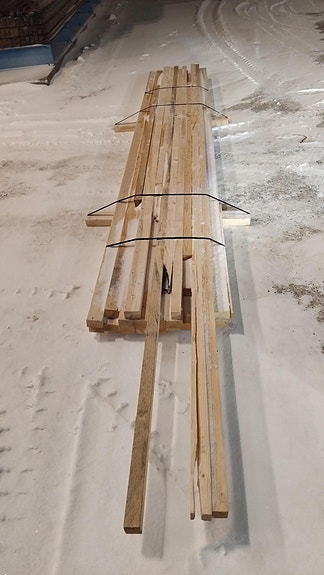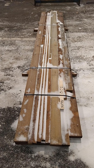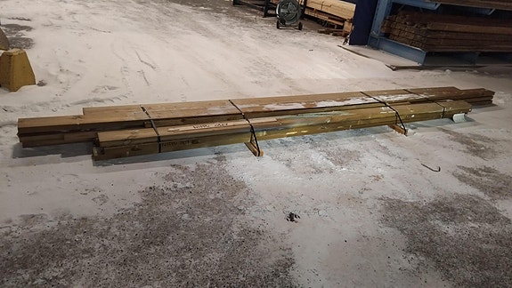 Epäkuranttia kestopuu terassilautaa. Mahdolliset viat esim. vääntynyttä, keskeltä katkennutta tai pituussuunnassa haljennutta.