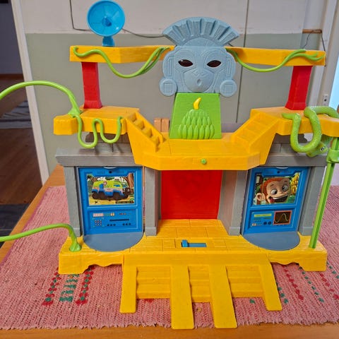 Ryhmä Hau viidakkotemppeli. Ylätasosta toinen puoli lohjennut (toinen kuva), ei haittaa leikkejä.