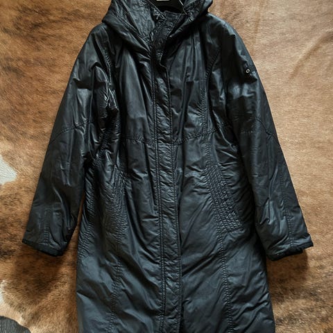 MuKa beige naisten takki, koko 38. Takissa on päällikangas, joka koostuu 80 % akryylistä ja 20 % polyesteristä. Vuori on 100 % polyesteriä.
