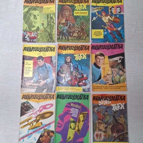 Avaruusmatka vuoden 1974 1-14 sarjakuvat. Muutama lehti todella hyväkuntoinen, muutama huonompi. Näkyy kuvissa. Myyn kokonaisuutena 100€.