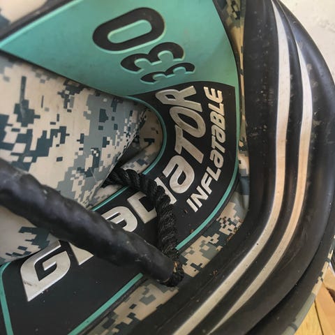 Inflata-Shield™-materiaali ehkäisee reikien syntymistä ja liiallista venymistä sekä parantaa otetta. Sisältää moottorin asennusläpiviennit käytettäväksi 1,5 hv:n (1,1 kW) moottorin telineen kanssa (moottori ja moottorin teline eivät sisälly toimitukseen). Ilmalla täytettävä lattia tuo lisämukavuutta.