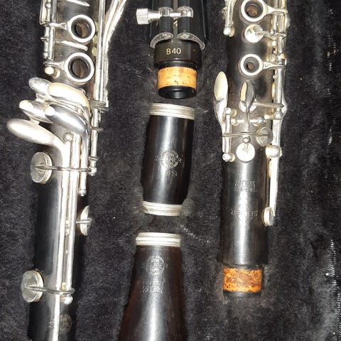 Silver plated. Used condition. It could use a clean, oil, and adjust. Functions as it should. The footjoint is a little loose. The case is cracked on the inside under the velvet, but the flute still stays in the case.