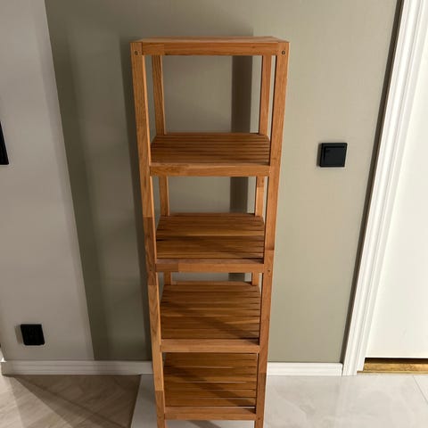 Myydään Ikean valkoinen, puinen Muskan-hyllykkö.