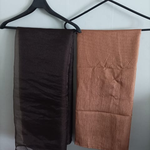 Kaksi pellava sivuverhoa. Molemmissa pitsi yhdellä pitkällä sivulla. Leveä alakäänne. Sen avaamalla mahdollisuus saada jooa 24 cm lisäpituutta.