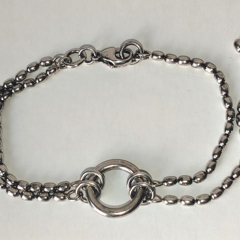 Hopeinen rannerengas, halkaisija 6,2 cm.