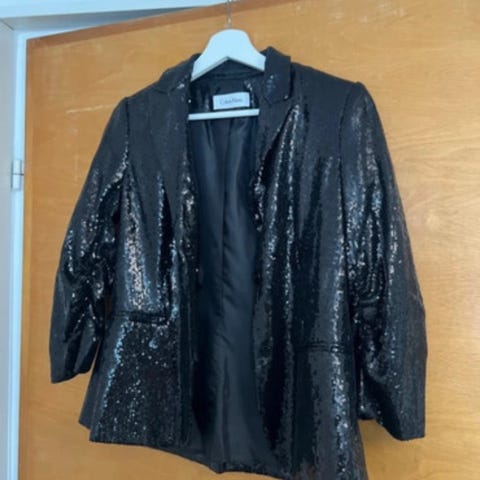 Siisti ja hyvin istuva Calvin Klein jakku kokoa 4, vastaa mielestäni S kokoa. Calvin Klein oma mittataulukko antaa kooksi XS mutta omasta mielestäni reilu S.