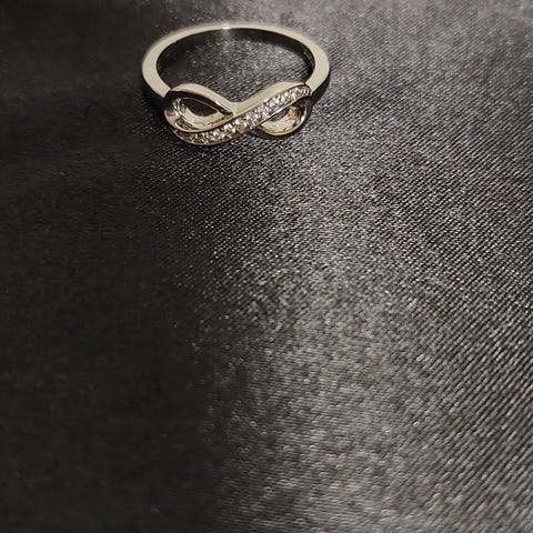Allergiavapaasta materiaalista valmistettu sormus, hopean värinen, sisähalkaisija 19mm.