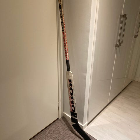 Jääkiekkomaalivahdin maila, sekä luistimia erikokoisia ja kiekkoja