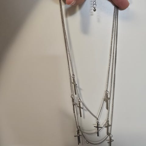 Kaulaketju, jossa useita ketjuja ja ristejä. Isoimmissa risteissä kauniit koristekuviot.