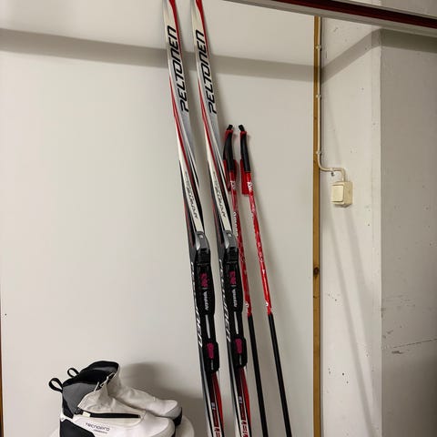 Myydään vähän käytetyt voideltavat Peltonen Delta perinteisen sukset, 200 cm. Siteet Salomon Profil. SNS, ja käytetyt monot Jalas, 44. Uudet korkkikahvaiset Rex Astra sauvat, 155 cm. Välineet sopivat 175-185 cm pituiselle, ja 75-90 kg kokoiselle hiihtäjälle. Myydään tarpeettomina. (Ps. Varkauden, Pieksämäen ja Joroisten alueille ilmainen kuljetus.)