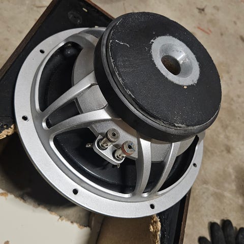 Elementin asennusreikää on suurennettu hieman reippaasti, sillä se oli liian pieni käytetylle elementille. Yksi kiinnitysruuveista meni kyseisellä elementillä jopa huti levystä. Voi käyttää 10” tai suurentaa 12” elementille.