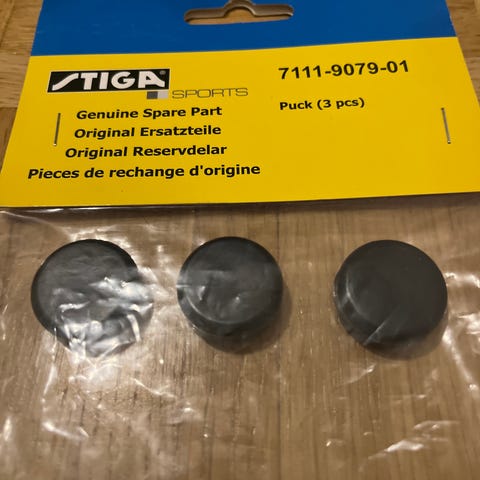 STIGA pöytäjääkiekkopelin NHL- kiekot, joissa on eri joukkueiden logot, bonuksena myös kaksi (2) mustas peruskiekkoa.