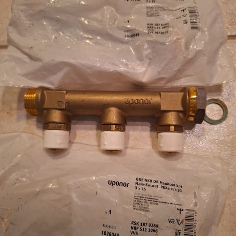 Käyttövesijakotukkeja 3- ja 4-osaisia. 15mm uponor pex-putkelle.
