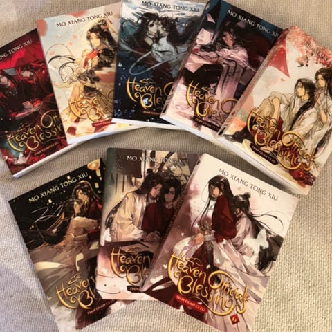 Heaven Official's Blessing Novel 1-8 (koko sarja) englanniksi. Kunto erittäin hyvä, luettu kerran.