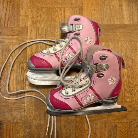 Muydään luistimet koko 34 vaaleanpunaisella värityksellä. Kissakoti.