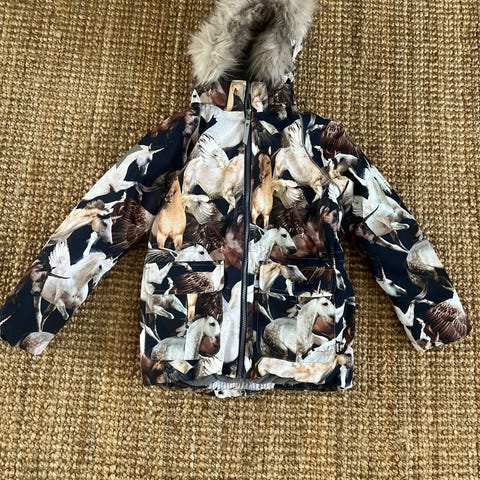 Uusi molon toppatakki koko 140. Vähän pidempää mallia. Takkia on vain sovitettu ja laput poistettu.