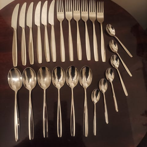 Hyväkuntoiset Carelia aterimet 2x haarukka 20cm, 2x veitsi 21cm, 2x kahvilusikka, 2x ruokalusikka. Käytössä olleet, joten vähän käytön jälkiä.