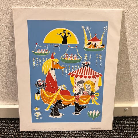 Kaunis Muumipappa-juliste, koko 70 x 50 cm. Teksti Helsingfors bokmässa 2023. Juliste on pakattu kartonkiputkeen.