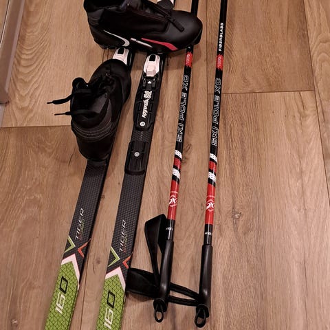 Kuvassa näkyvä Fischerin suksisetti myynnissä. Nämä odottaneet muutamia vuosia varastossa käyttäjäänsä, hiihdetty max. 5kertaa - kunto siis on hyvä. Sauvojen pituus 135cm. Näihin sopivat koon 40 monot myynnissä erikseen.