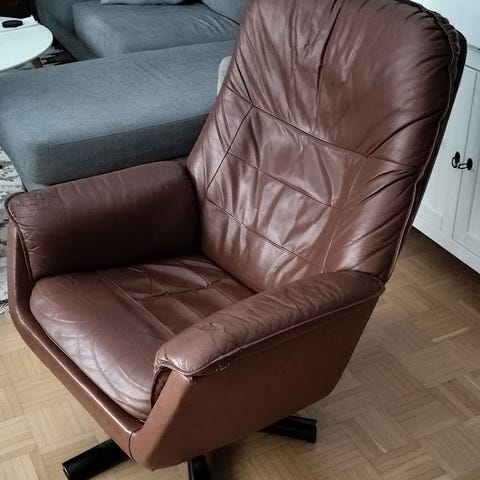 Lemmikille jo jonkin verran elämää nähnyt nojatuoli. Istuimen kangas ehjä mutta värivirheinen puhdistuksen takia. Ei voimakasta hajua mutta suosittelen eläimelle omaksi talvi tuoliksi. Koiralle ja kissalle tuttu. Vain nouto Suurpelto Espoo.